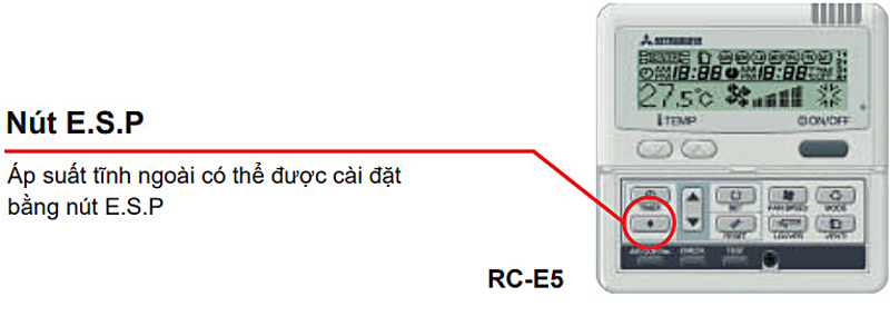 Tự Động Điều Chỉnh E.S.P: Cho phép người dùng dễ dàng đặt áp suất tĩnh bên ngoài (E.S.P) mong muốn thông qua bộ điều khiển có dây RC-E5. Dàn lạnh sẽ kiểm soát tốc độ quạt để đảm bảo đúng lưu lượng gió đã được tính toán, bất kể cấu trúc ống gió phức tạp đến đâu.